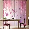 2片粉色花卉蝴蝶图案窗帘,杆袋式设计,保护隐私,适用于卧室、书房、客厅、阳台、工作室、宿舍、圆形窗户、家居装饰