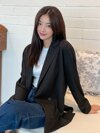 女士复古风蓝色竖条纹软绒宽松秋季西装外套单排扣,版型宽松,修身休闲百搭请买小一码