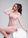 Eassivo Eassivo 女士拉链半襟落肩长袖上衣和吊带背心连体裤休闲运动服套装瑜伽健身女士套装