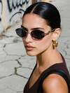 1 副女士复古椭圆形镜框时尚眼镜,带装饰镜腿,适合海滩、旅行、街头摄影、通勤的时尚眼镜