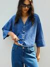 Maija 女士深蓝色牛仔衬衫,七分袖,适合都市通勤、商务休闲、办公室穿着,优雅百搭,也适合圣诞节和新年派对。