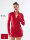 女士专业无缝拉链夹克,紧身运动服,适合跑步、健身、瑜伽