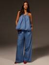DAZY 女士抹胸上衣和宽松牛仔裤套装