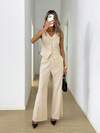 Franclia 休闲卡其色西装外套搭配吊带收腰直筒连衣裙,女士两件套套装,通勤休闲皆宜,春秋季穿着。