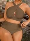 Swim Vcay 夏季海灘加大碼交叉綁帶側頸頸比基尼套裝