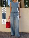 Livesso 春夏宽松休闲度假风蓝色圆领背心和阔腿牛仔裤 Old Money 女士牛仔套装