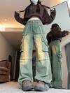 直筒宽松阔腿牛仔裤,高街设计女式工装裤