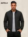 AHTELB 男士纯色立领棒球夹克,修身休闲多功能防风外套,街头时尚黑色春季夹克