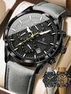 POEDAGAR 1件男士时尚休闲石英日历计时腕表,PU皮表带,防水夜光,适合日常佩戴,男士礼物