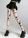 1双女士春夏酷炫虎剑纹身印花超薄透明连裤袜,裸色透明丝滑连裤袜,哥特朋克风丝袜,适合日常和派对穿着