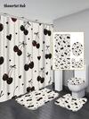1/3/4件套樱桃爱心图案浴帘浴室套装,水彩风格,优雅防水耐磨,浴室装饰及配件,含12个挂钩 - 包括马桶盖套、浴垫和地毯,涤纶面料 - 可水洗 - 非常适合节日装饰、家居/卧室/住宅/西式/春季装饰