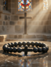 8毫米天然哑光玛瑙十字珠手链,弹性手链,宗教手环,男女皆宜