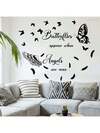 1片创意英文羽毛蝴蝶墙贴,灵感源于自然,采用自粘可移除PVC材质,适用于客厅或卧室墙面,优雅的羽毛蝴蝶墙贴,时尚家居装饰,可撕除,瞬间将普通墙面变成优雅的视觉焦点。
