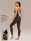 Dewbera 女士时尚运动交叉设计露背紧身连体裤机场穿搭全身紧身连体裤机场穿搭健身女装