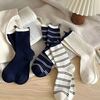 4双装条纹运动袜 - 中筒袜,简约中筒袜,海军蓝和白色设计,柔软舒适面料,高弹吸湿排汗,适合日常休闲和运动穿着,四季皆宜。