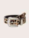 1 件女士波西米亚风格棕色拼布复古金属扣腰带,适合连衣裙、牛仔裤、音乐节和通勤装秋季、秋季、万圣节