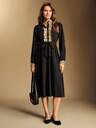 Écloséra 女士优雅高端正式办公通勤休闲曲线商务舒适下午茶纯色衬衫领V领开襟纽扣金属扣装饰工装口袋腰带金属D形环扣长袖衬衫裙短款连衣裙,秋冬