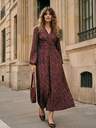 Écloséra 时尚休闲法式复古碎花衬衫领腰带装饰长袖春秋女装