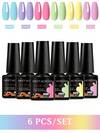MEET ACROSS 6支装7.3毫升马卡龙色凝胶指甲油套装,不含HEMA和TPO,半永久性可卸UV凝胶指甲油,适合夏季美甲,持久耐用,不含铅,可用于DIY美甲设计,所有产品均可用于装饰,美甲沙龙和家庭美甲用品套装