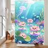 1件卡通莲花水母图案浴帘,时尚抽象莲花水母印花浴帘,适用于各种房间门窗、浴室装饰隔断、浴室