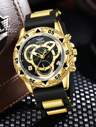 4 件套男士金色表带时尚休闲混合刻度带日历石英表手链项链戒指首饰套装适合日常佩戴装饰或节日礼物