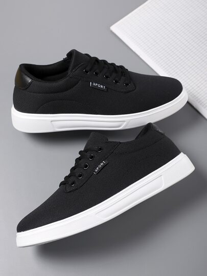 運動鞋適合男士,字母圖案前綁帶板鞋 - 黑色 - 查看 1