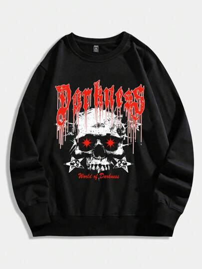 ROMWE MEN 男士字母&骷髅頭圖案套頭衫 - 黑色 - 查看 1