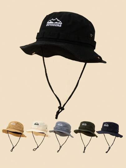 實用風帽 "OUTDOORS" 純色/彩色戶外休閒西部牛仔帽,設有防風下巴帶,極簡設計,男女通用情侶款式,春夏戶外露營和徒步旅行必備 - A - 查看 14