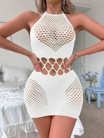1 件套女士霓虹内衣镂空网眼连衣裙,适合外出穿着 - 螢光綠 - 查看 1