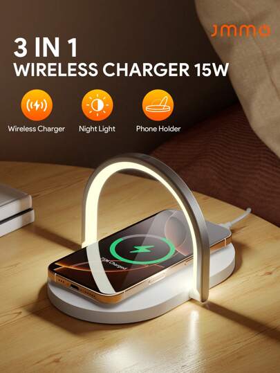 JMMO LED 床头灯,3 合 1 床头灯带无线充电器,3 种颜色模式触摸控制 LED 夜灯,适合儿童、成人、家庭、宿舍和办公室的手机支架 - 白色 - 查看 6