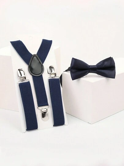 2 件/套儿童纯色吊带套装,儿童夹式背带带领结 - 2件套裝 - 查看 2