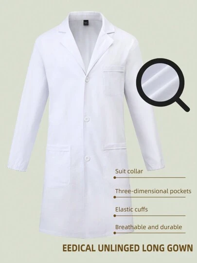 Manfinity Homme 男士经典实验室外套/白色长袍 - 白色 - 查看 8