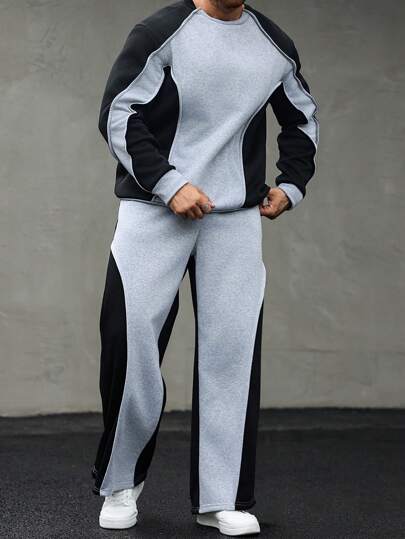 Manfinity Homme 男士加大码运动衫套装,休闲时尚,适合日常穿着 - 彩色 - 查看 1