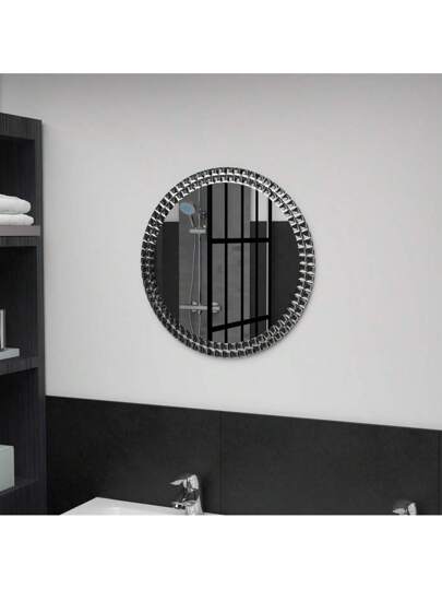 Contemporary 50 Cm Round Wall Mirror With Acrylic Crystal Rim - Stylish Tempered Glass Mirror For Easy Mounting In Bathroom Decor - 銀色 - 查看 1