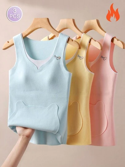 3 件装女孩成长期保暖无袖内衣,无缝加垫胸罩打底针织背心,适合冬季 - 彩色 - 查看 6