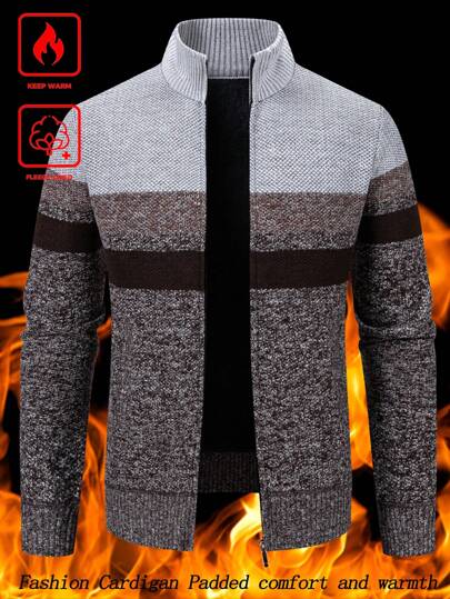 Manfinity Homme 男式纯色拼接前拉链长袖休闲上衣 - 咖啡棕 - 查看 3