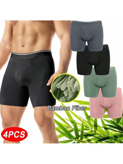 4PCS Bamboo Fiber Mens Boxer Briefs Shorts Long Legs Anti Chafing Underpants Trunks Underwear Pants Soft Comfortable Sports Fitness Running Breathable Moisture-Wicking Multipacks - Black/Grey/Pink/Green - 查看 4