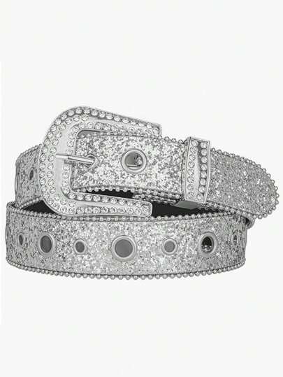 1 条女士水钻珠链装饰腰带时尚宽腰带个性亮片牛仔裤衬衫装饰腰带 - 彩色 - 查看 1