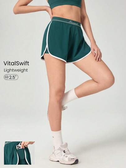 GLOWMODE Tennis Get In Motion 分层侧开衩撞色腰带修身短裤 内置短裤 中等冲击跑步训练健身健身房 - 墨綠色 - 查看 1