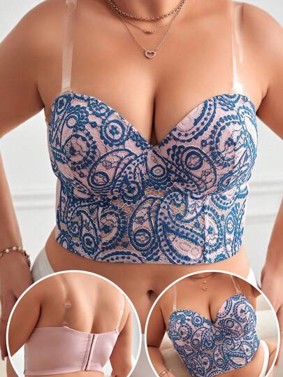 大码女士时尚刺绣钢圈聚拢文胸 - 彩色 - 查看 1