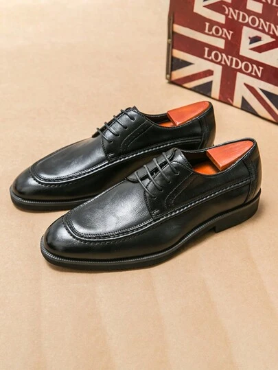男士皮鞋,2025新款英伦风正装商务休闲复古百搭系带婚鞋,春季 - 黑色 - 查看 11