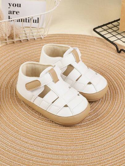1 双男童纯色 PU 钩环设计平底百搭透气派对时尚凉鞋,适合夏季 - 白色 - 查看 1