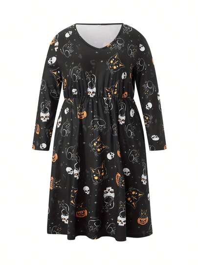 Women's Flowy Dress Elegant Long Sleeve V Neck Elastic Waist Pocket Dress Midi Dress - 黑色 - 查看 1