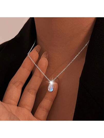 1 件优雅月光石吊坠项链 925 纯银,适合女性、情人节、母亲节、日常佩戴、度假、节日 - 銀色 - 查看 2