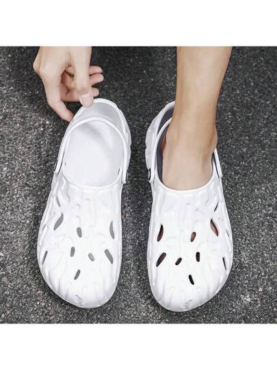 1 双不对称印花轻便舒适透气网眼木屐,防滑花园鞋/男女凉鞋,厚底户外/沙滩拖鞋 - 白色 - 查看 1