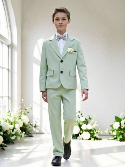 SHEIN 2 件套青少年男孩正装套装 - 西装外套 + 裤子,适合生日派对、婚礼、洗礼、生日、毕业典礼的正式服装 - 薄荷綠 - 查看 6