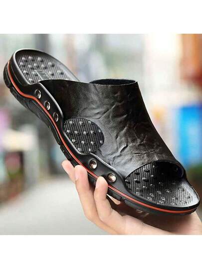 男士时尚休闲凉鞋沙滩拖鞋 - 黑色 - 查看 1