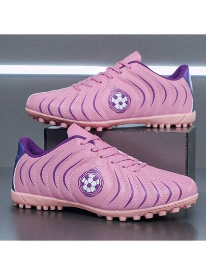 青少年男女通用足球鞋,专业 TF 钉鞋,适合训练/比赛,适合人造草坪和室内,低帮,粉色 AG 草坪鞋 - 粉色 - 查看 1