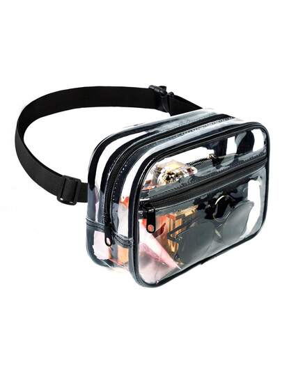 适合体育赛事的透明腰包 - 男女通用防水透明腰包 | 轻便腰包适合音乐会、体育比赛和旅行 | 体育场认可的透明腰包(黑色) - 黑色 - 查看 1