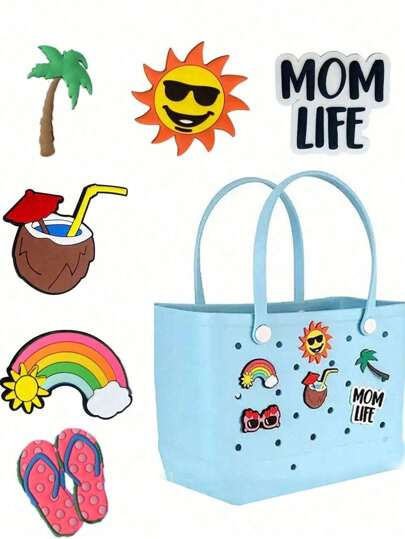 橡胶沙滩饰物,用于包袋插入物,时尚海滩主题饰物插入物,包袋配件和木屐鞋配件,PVC 橡胶手提包插入饰物,橡胶沙滩包,沙滩派对礼品手提包装饰 - 彩色 - 查看 10